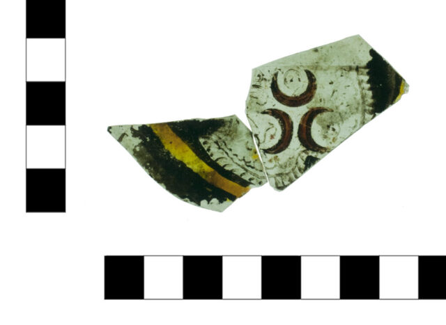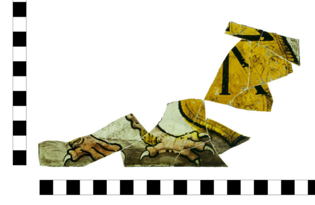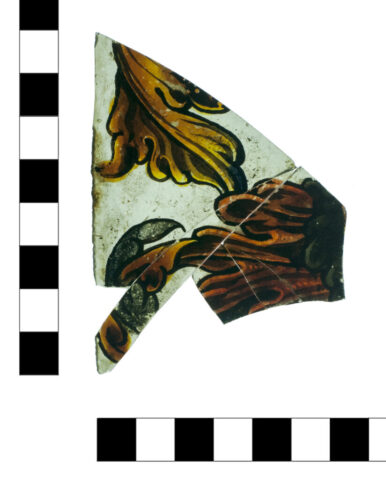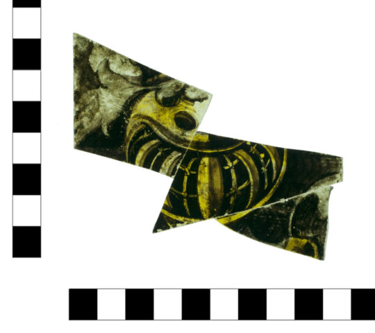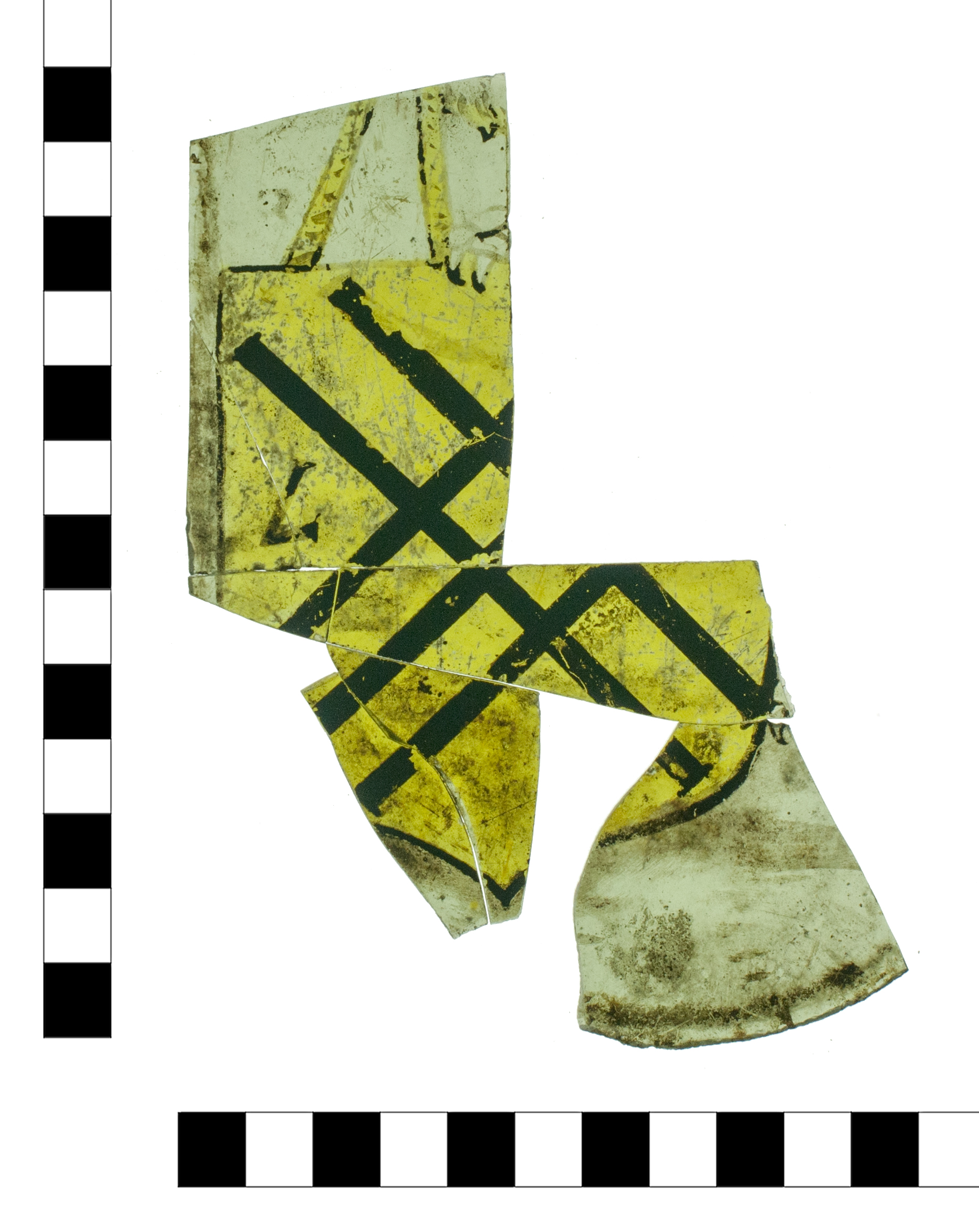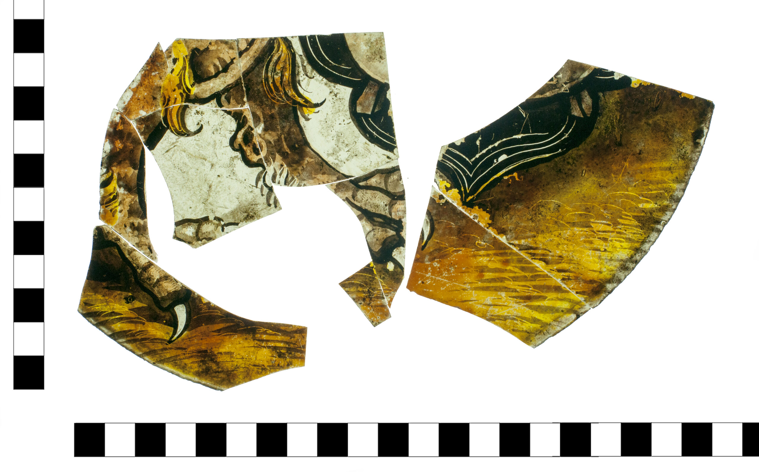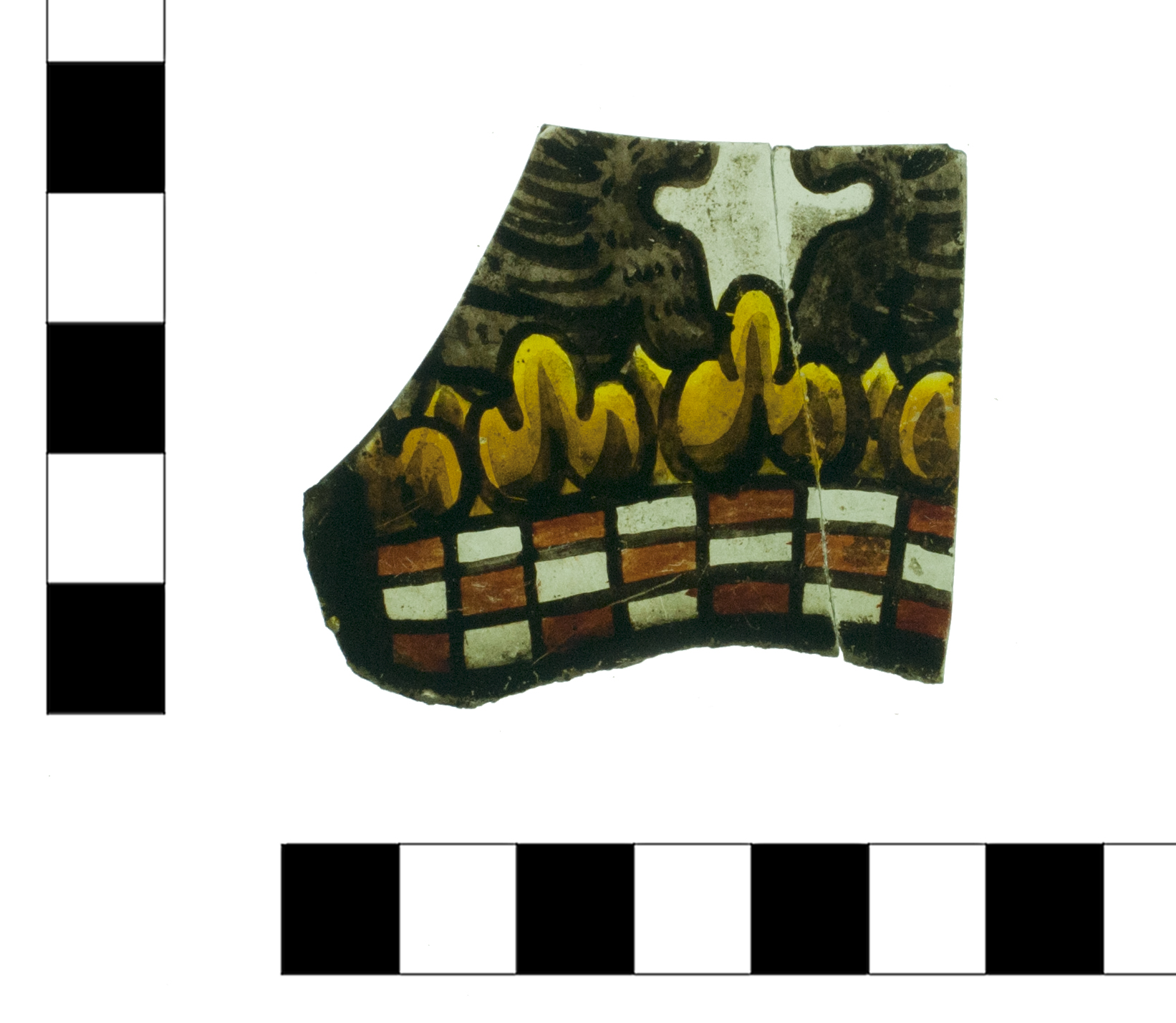 Een groot deel van het gebrandschilderd glas heeft tot wapenglazen behoord. Een wapen bestond uit meerdere elementen: